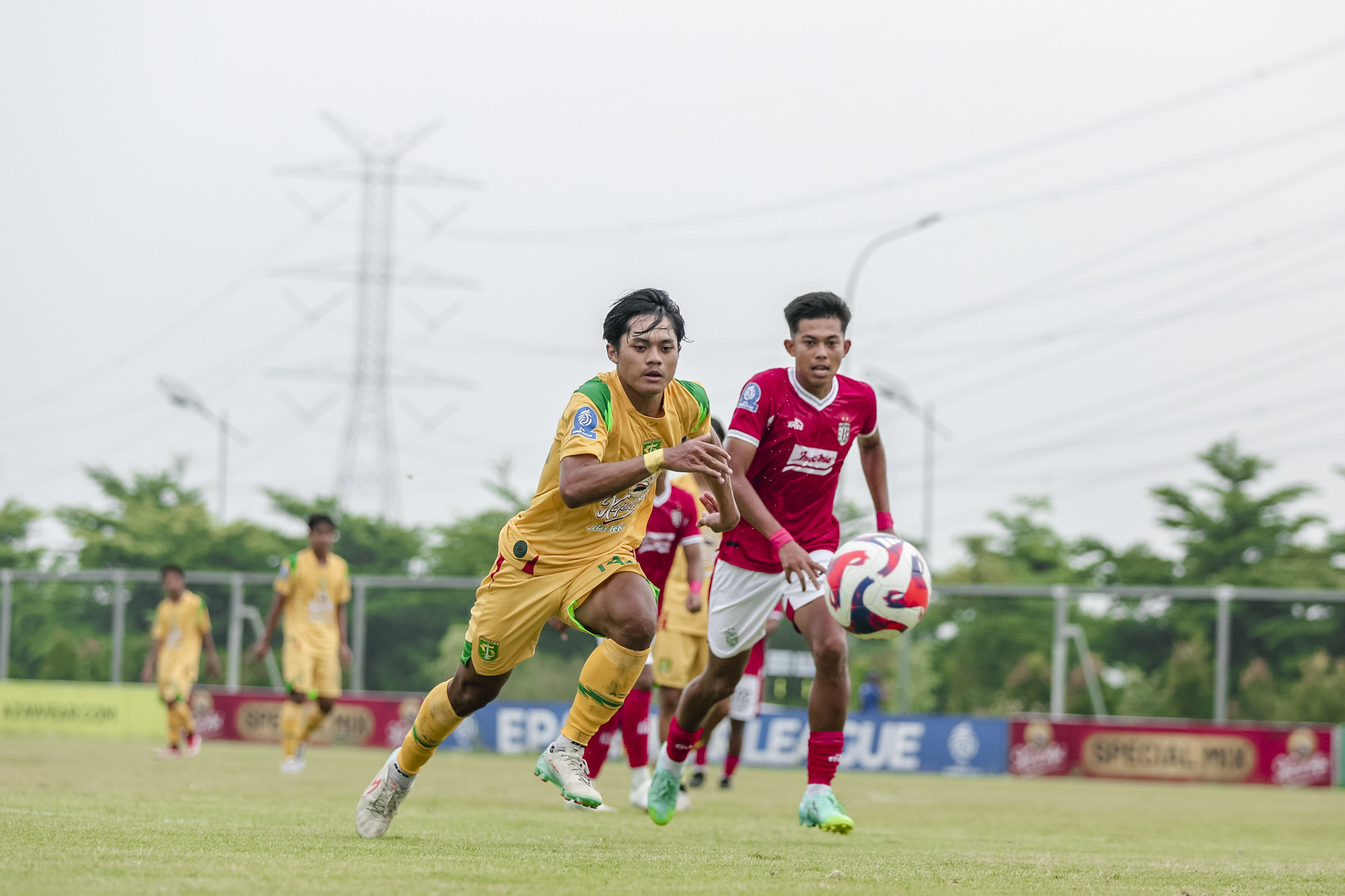 Pemain Persebaya U-20 Dzakwan Javier berebut bola dengan pemain Bali United U-20. (Persebaya)